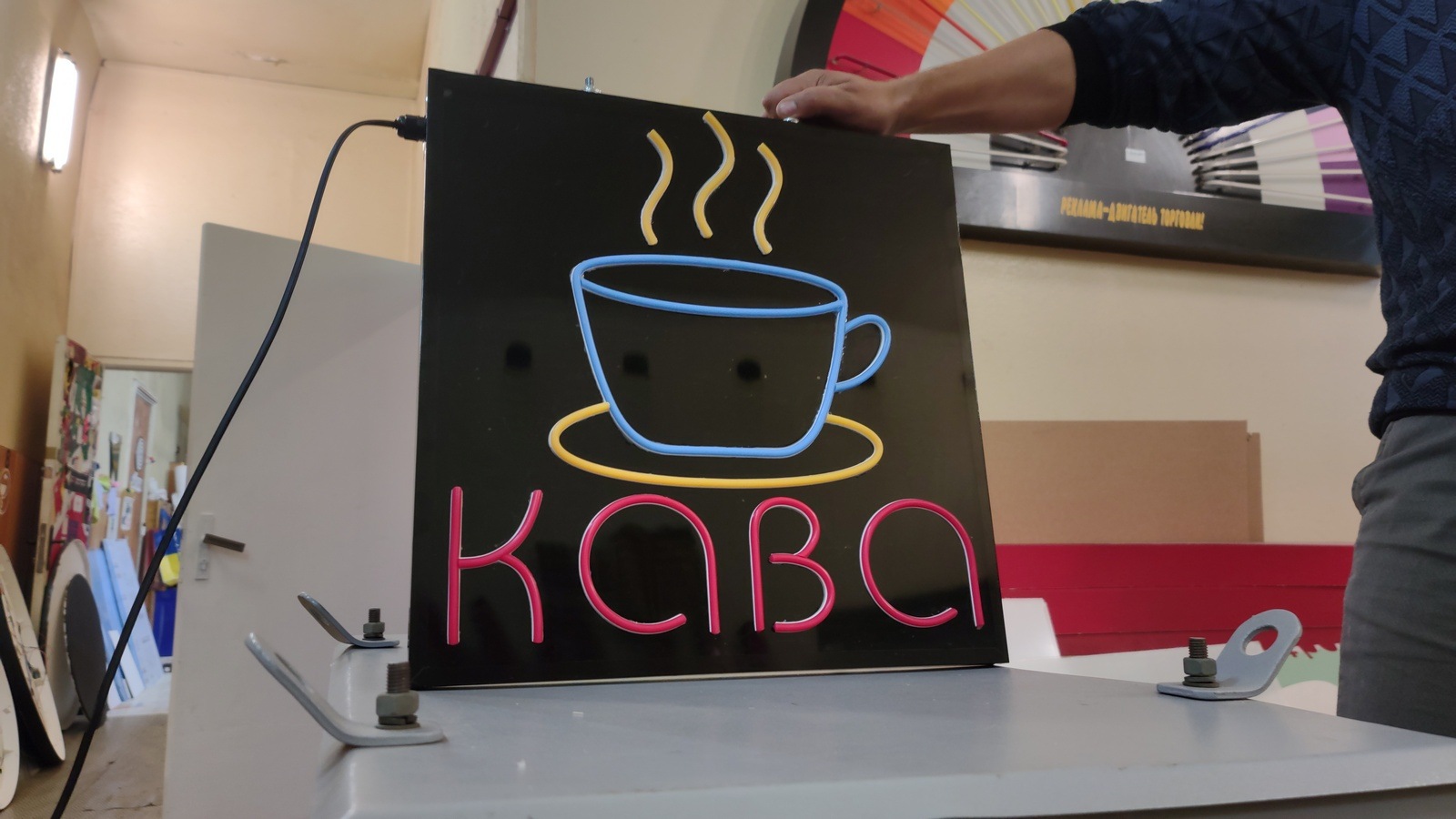 - Непрозорість матеріалу. ПВХ - це непрозорий пластик, тому все підсвічування відбувається виключно через сам LED неон. Підсвітити фон або створити ефект «летючого» світла ззаду - неможливо (на відміну від акрилу). Це обмежує дизайнерські рішення, особливо для інтер'єрних вивісок та фотозон.